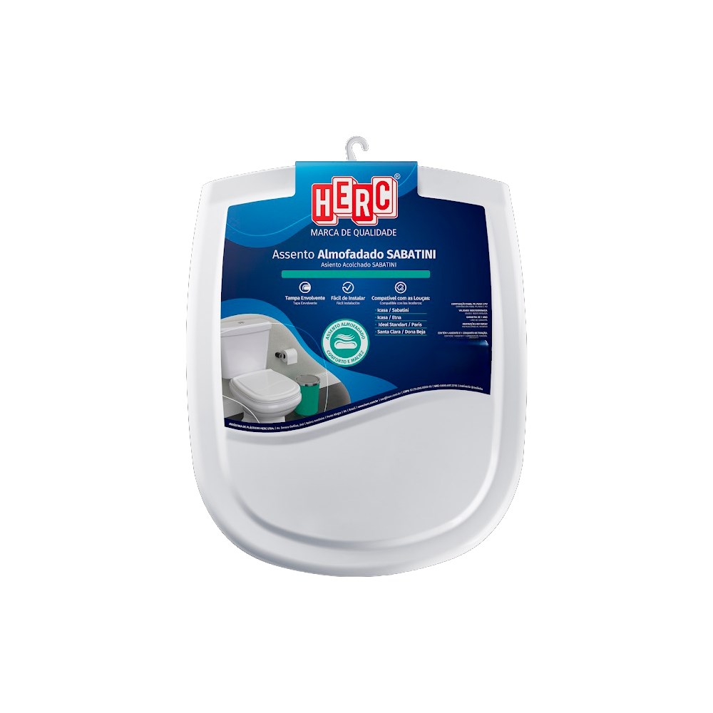 conforto superior e maciez, espuma de alta densidade, encaixe firme e seguro, tampa envolvente, compativel com as louças Icasa / Sabatini / Etna / Ideal Standard /Paris / Santa Clara / Dona Beija